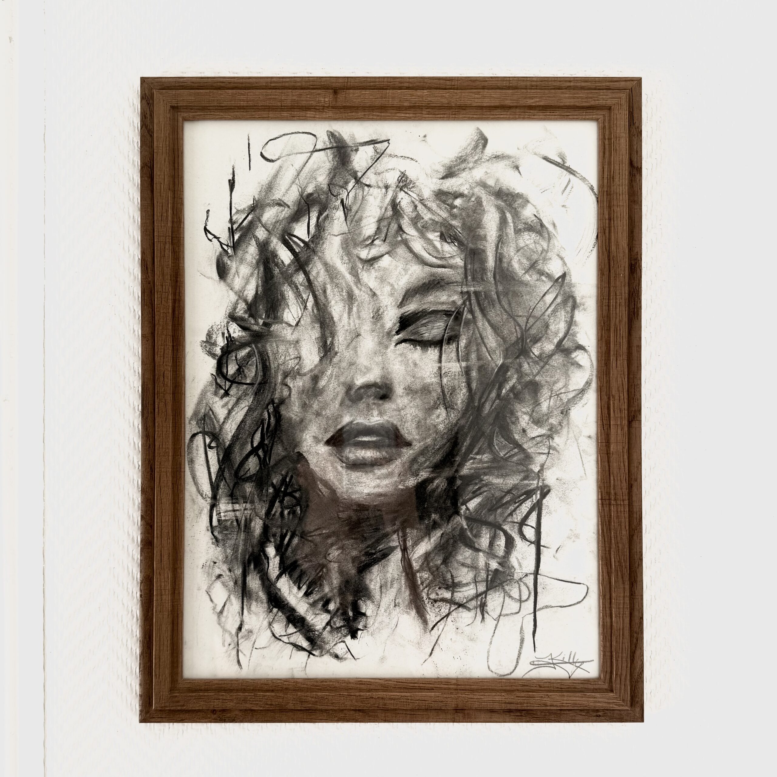 • Dessin au fusain signé